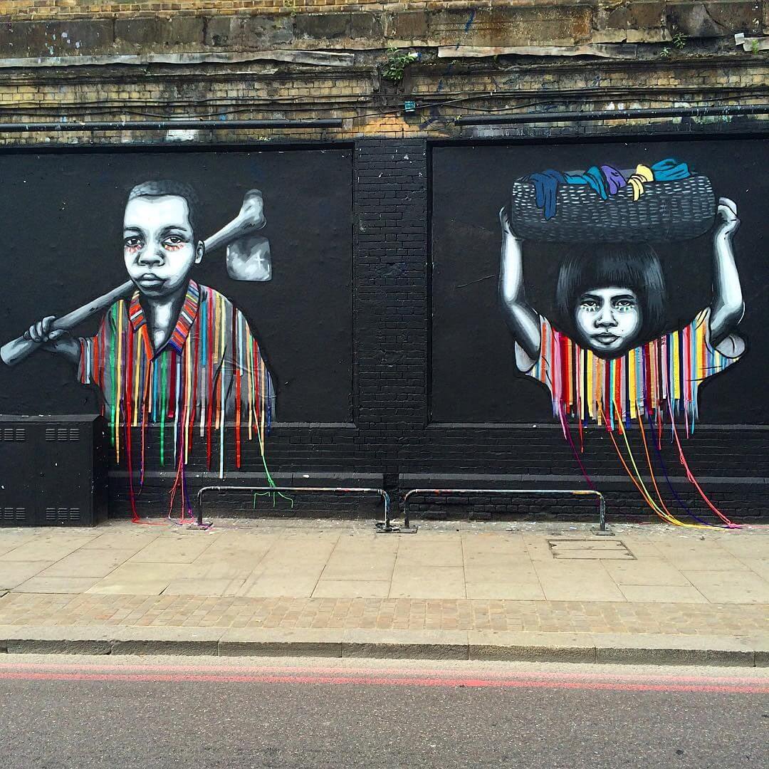 También lleva su obra a la calle, crea mezclas entre el paisaje y los muros.