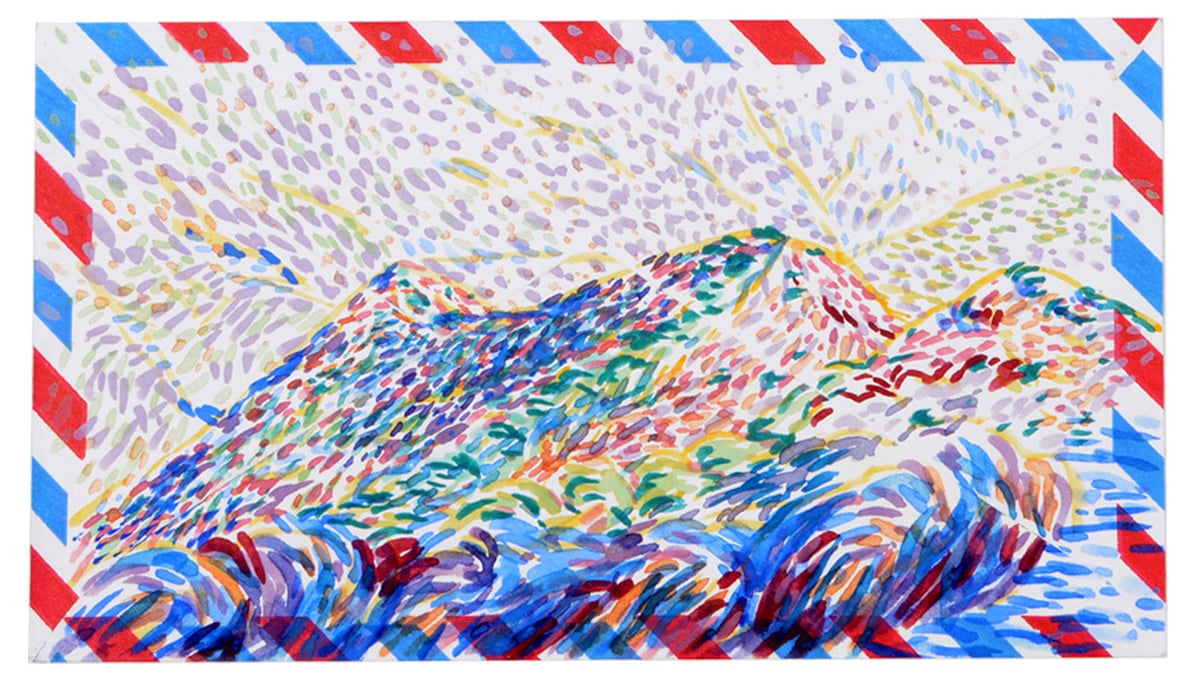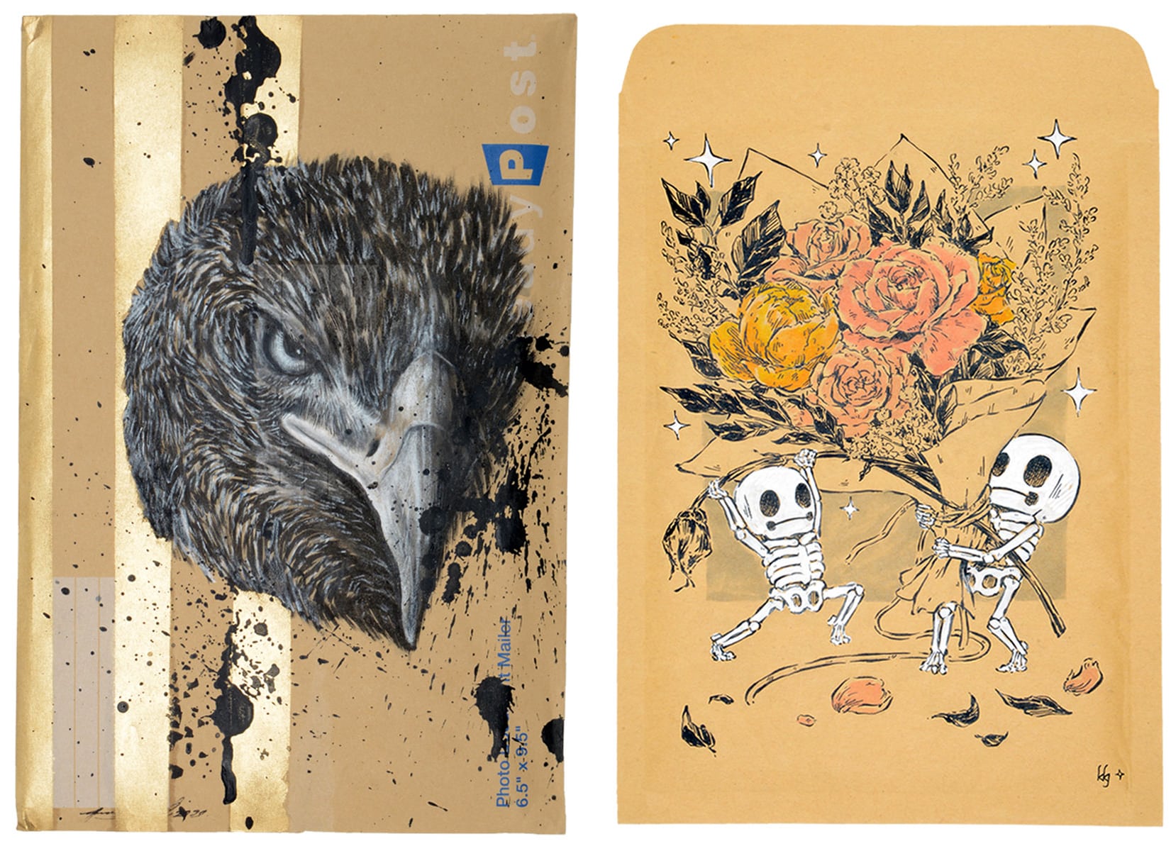 “Mensajeros de esperanza” muestra una serie con diversos estilos eclécticos de acuarelas, lápices e ilustraciones de medios mixtos que transforman estos pequeños lienzos de sobre, en la visión del futuro de los artistas.