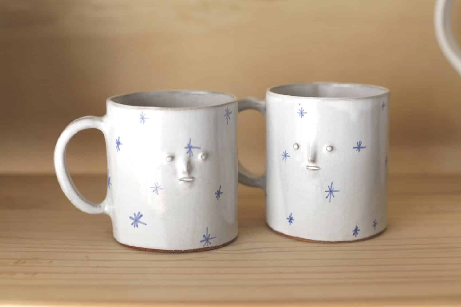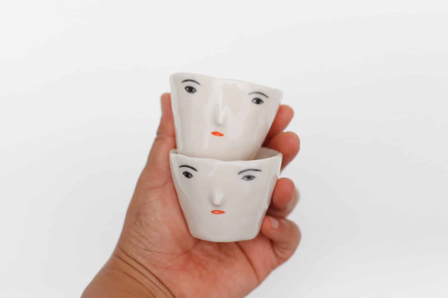 Personajes de cerámica con caras diminutas, animan las minimalistas tazas, macetas y otros objetos de uso cotidiano de la ceramista Rami Kim (web), una artista que ha estudiado cerámica y animación en el Instituto de Artes de California (Cal Arts) y en la UCLA, y con su obra ha logrado trascender los límites de la cerámica.