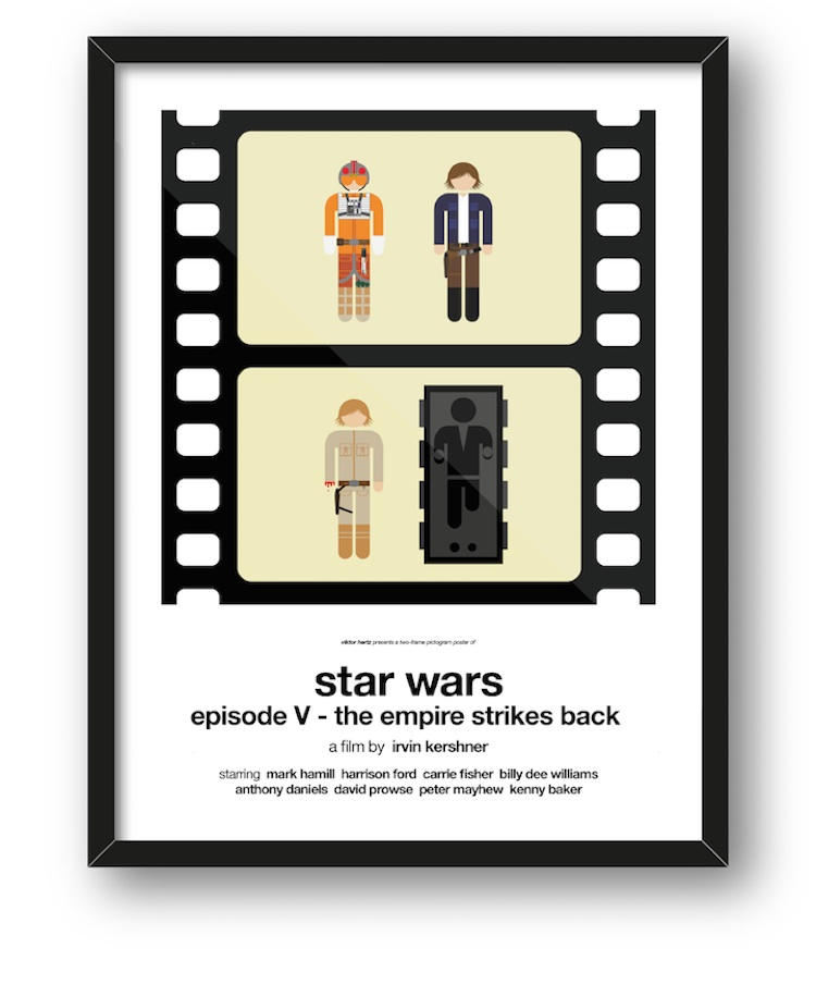 El diseñador gráfico con base en Estocolmo Viktor Hertz acaba de lanzar su más reciente proyecto en kickstarter. El pictograma de dos fotogramas, donde toma algunas de sus películas favoritas, Star Wars, Forrest Gump o pulp fiction y las convierte en inteligentes y minimalistas ilustraciones. Las líneas argumentales de estas películas han sido reducidas y descompuestas por el artista en sólo dos imágenes.