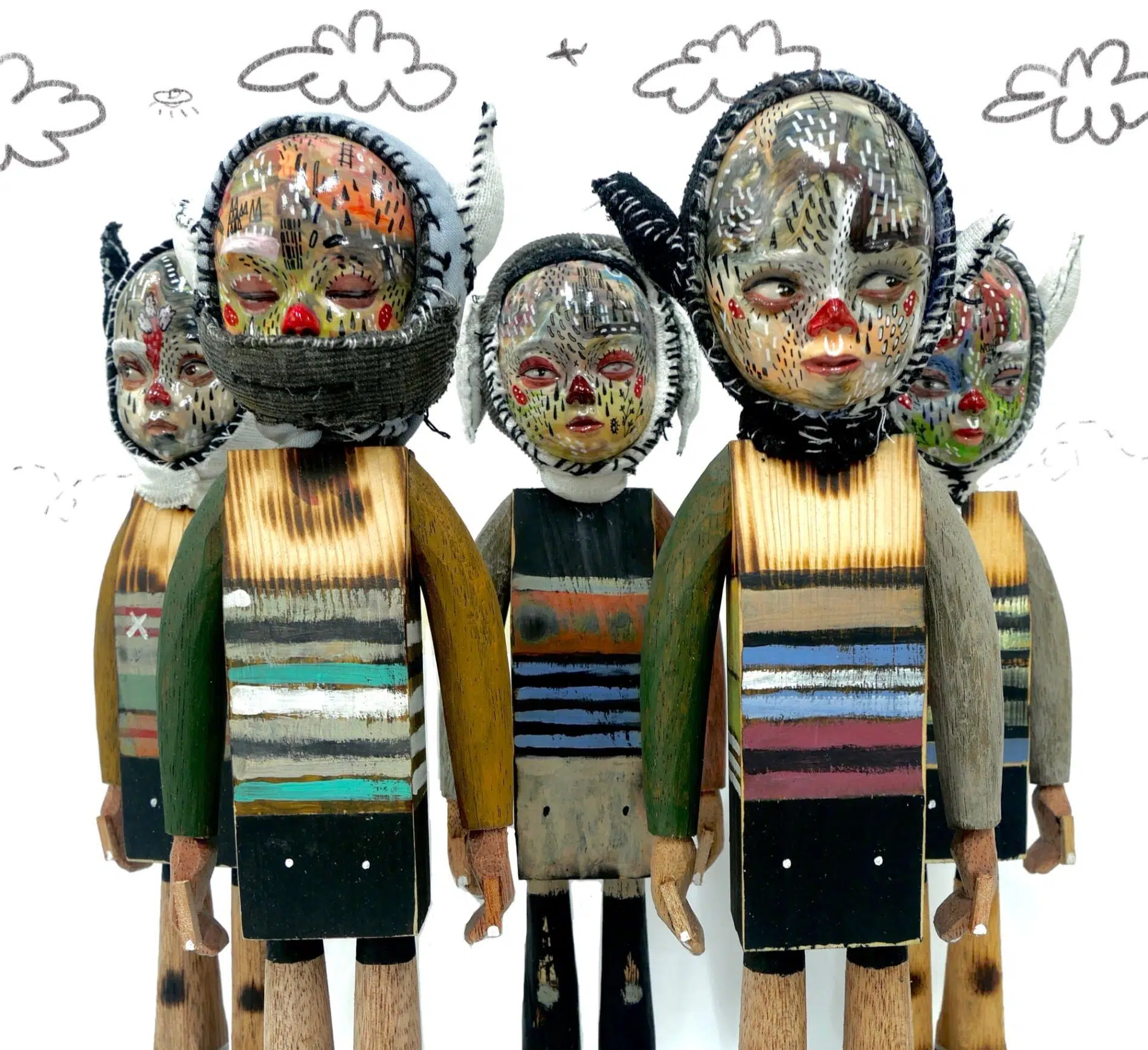 Esculturas de muñecos con expresiones caóticamente extrañas